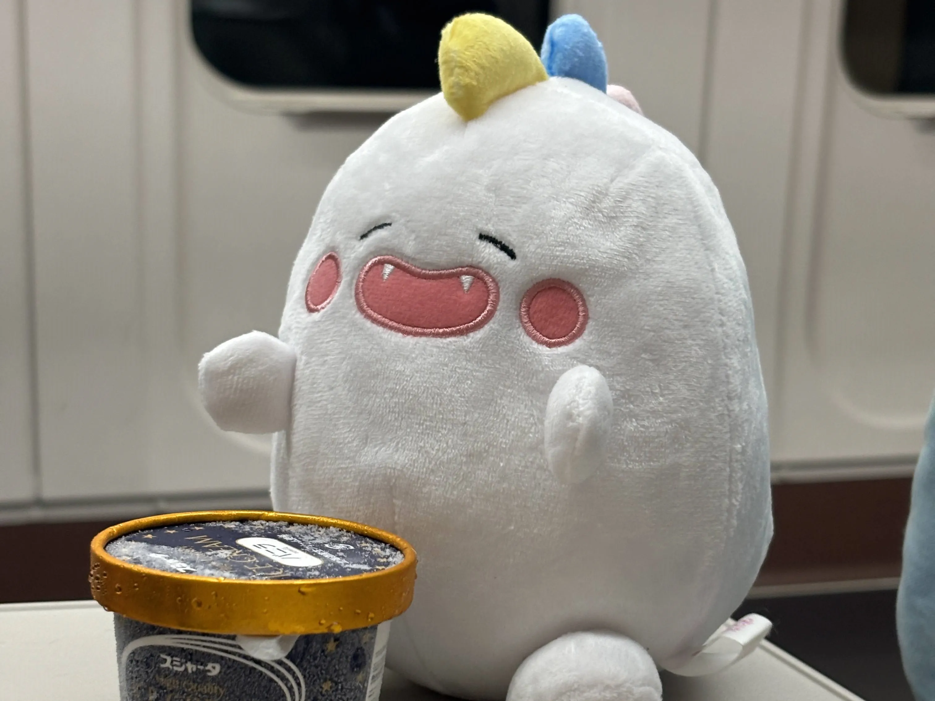 新幹線で新潟へ向かいます。アイスを頬張るゆいがおー。