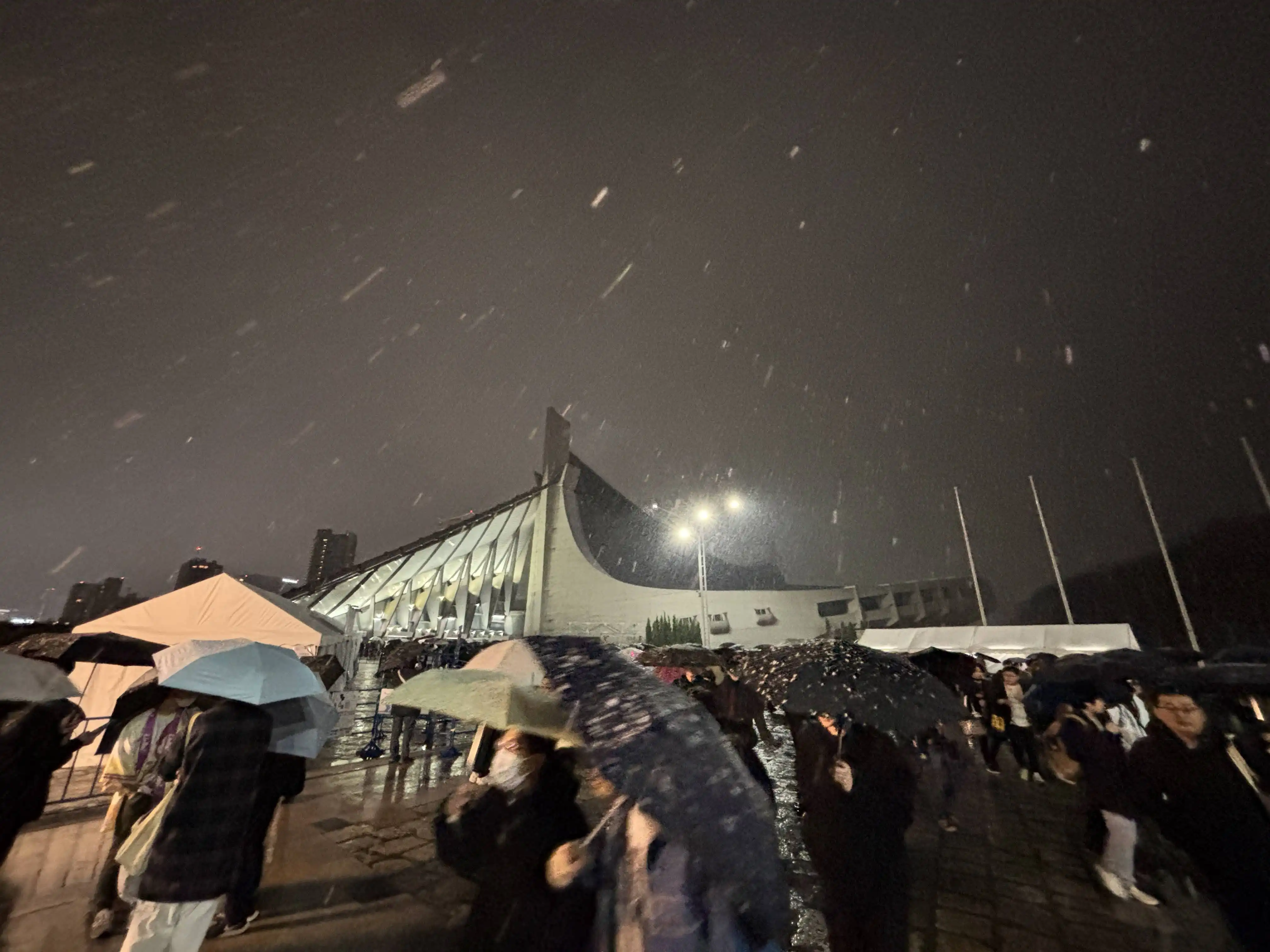 ライブが終わり退場した所、雪が降っていました。